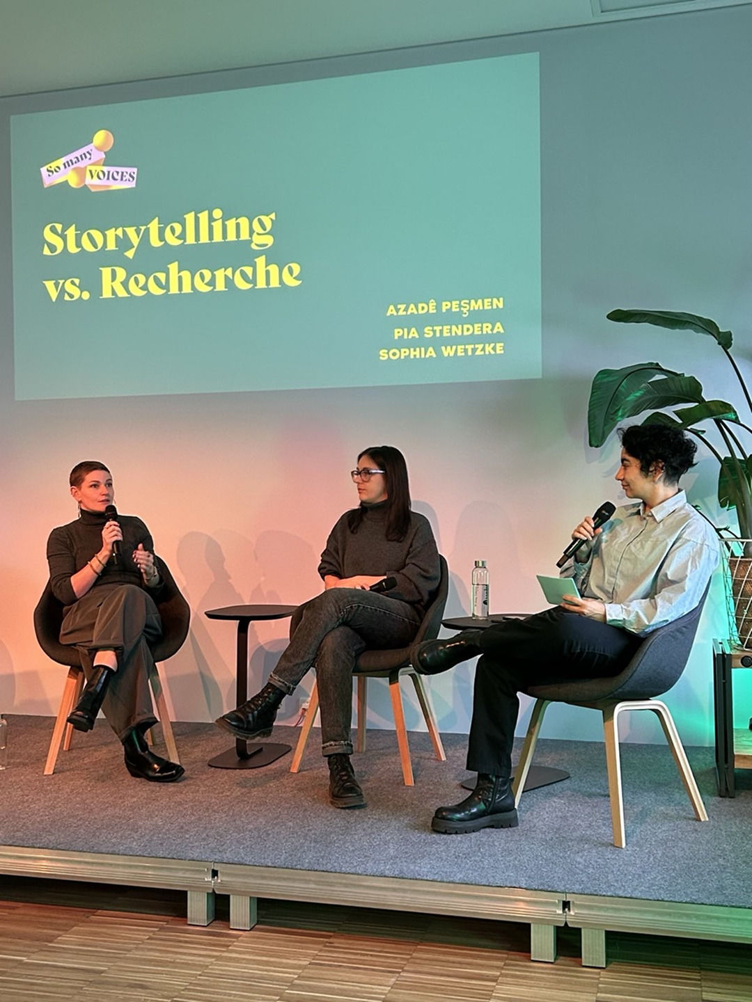 Wie kann man ergebnisoffen recherchieren, Quellen schützen und trotzdem einen dramaturgisch gelungenen und unterhaltsamen Podcast produzieren? Diesen Fragen sind Pia Stendera, Sophia Wetzke und Azadê Peşmen auf der So many Voices Konferenz in München nachgegangen.